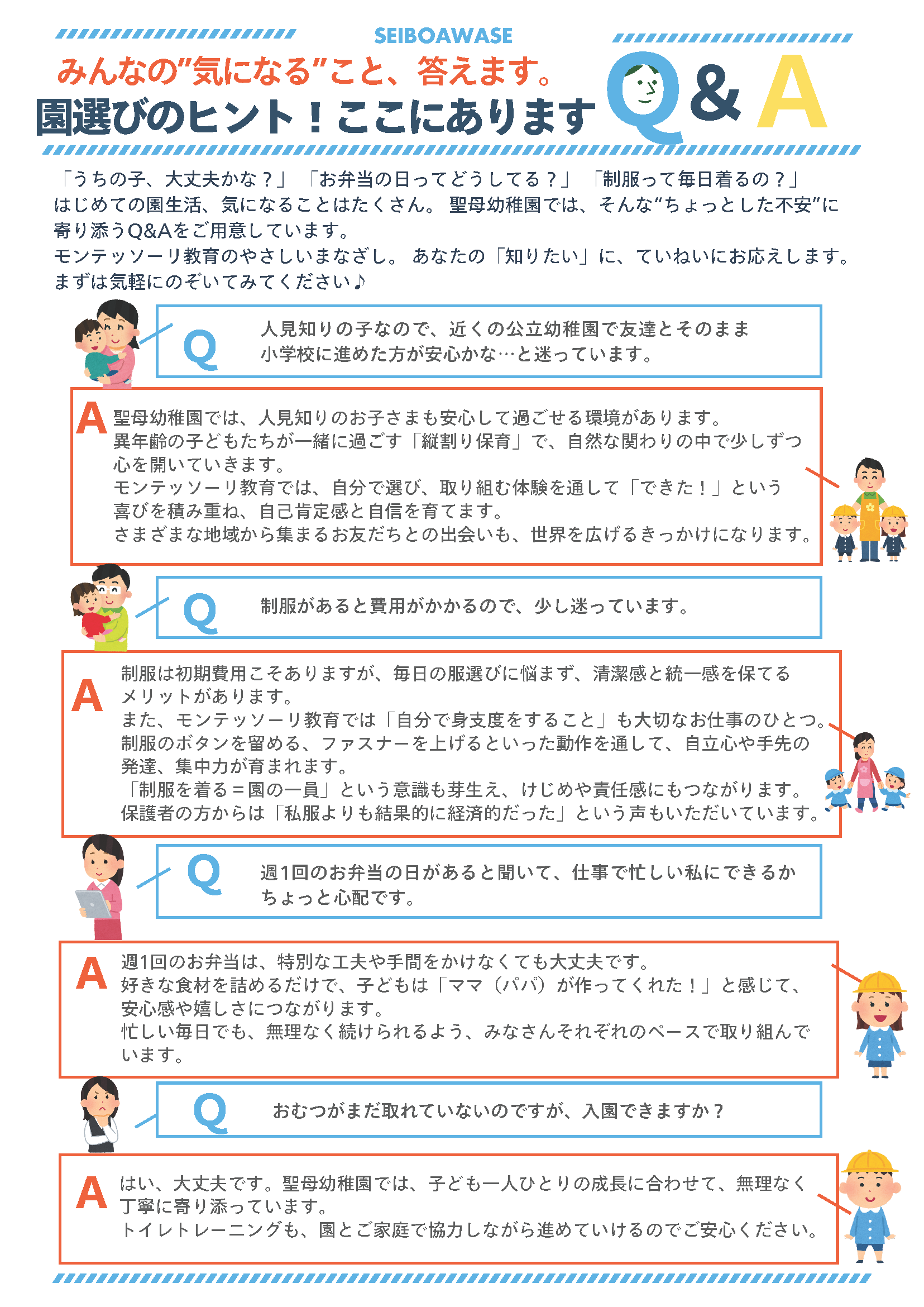 ・8:00〜14:00 幼稚園 ・保育修了後〜18:00 預かり保育 ・9:00〜13:00 3歳児未満児導入保育 |